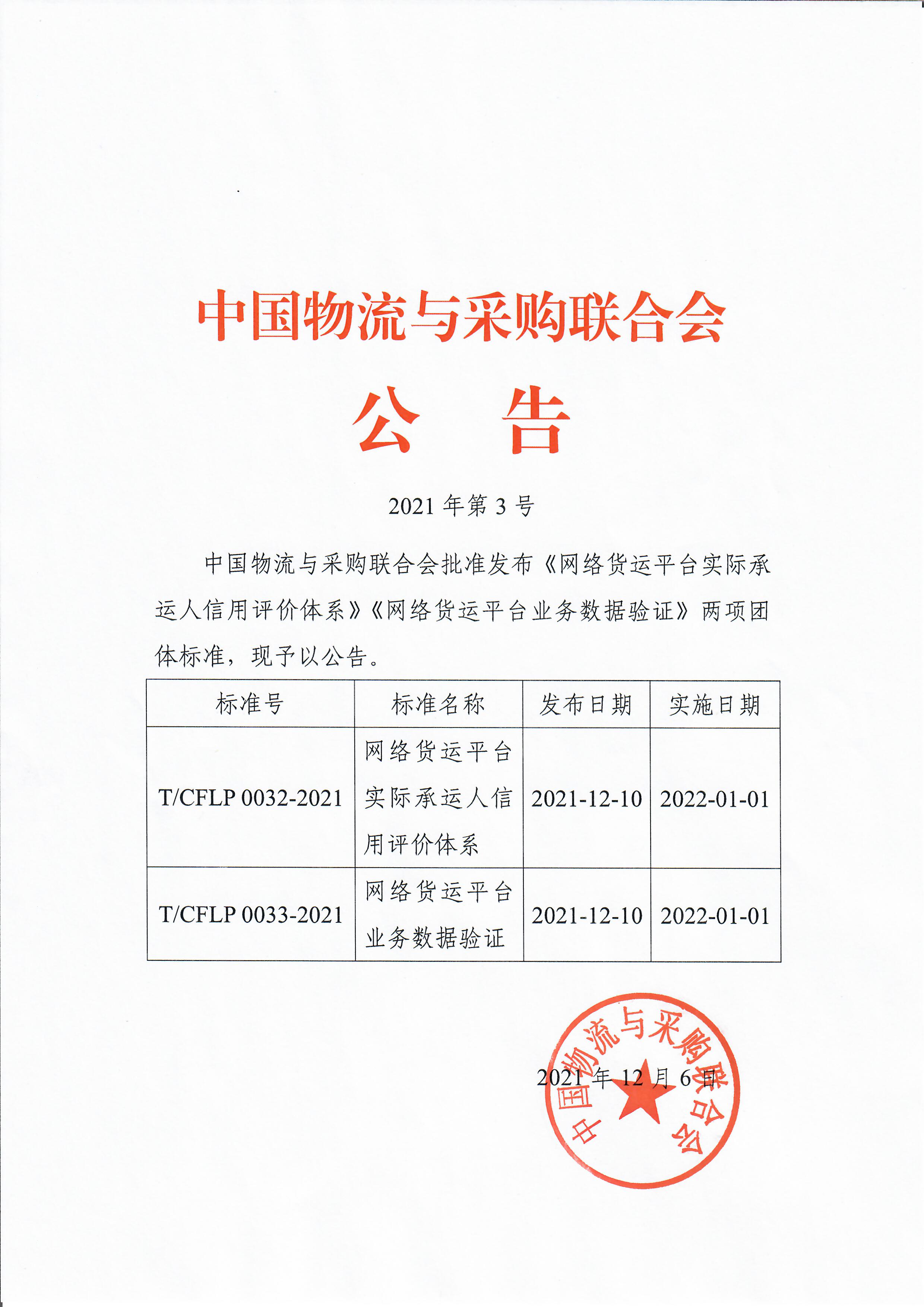 《网络货运平台实际承运人信用评价体系》等两项团体标准发布