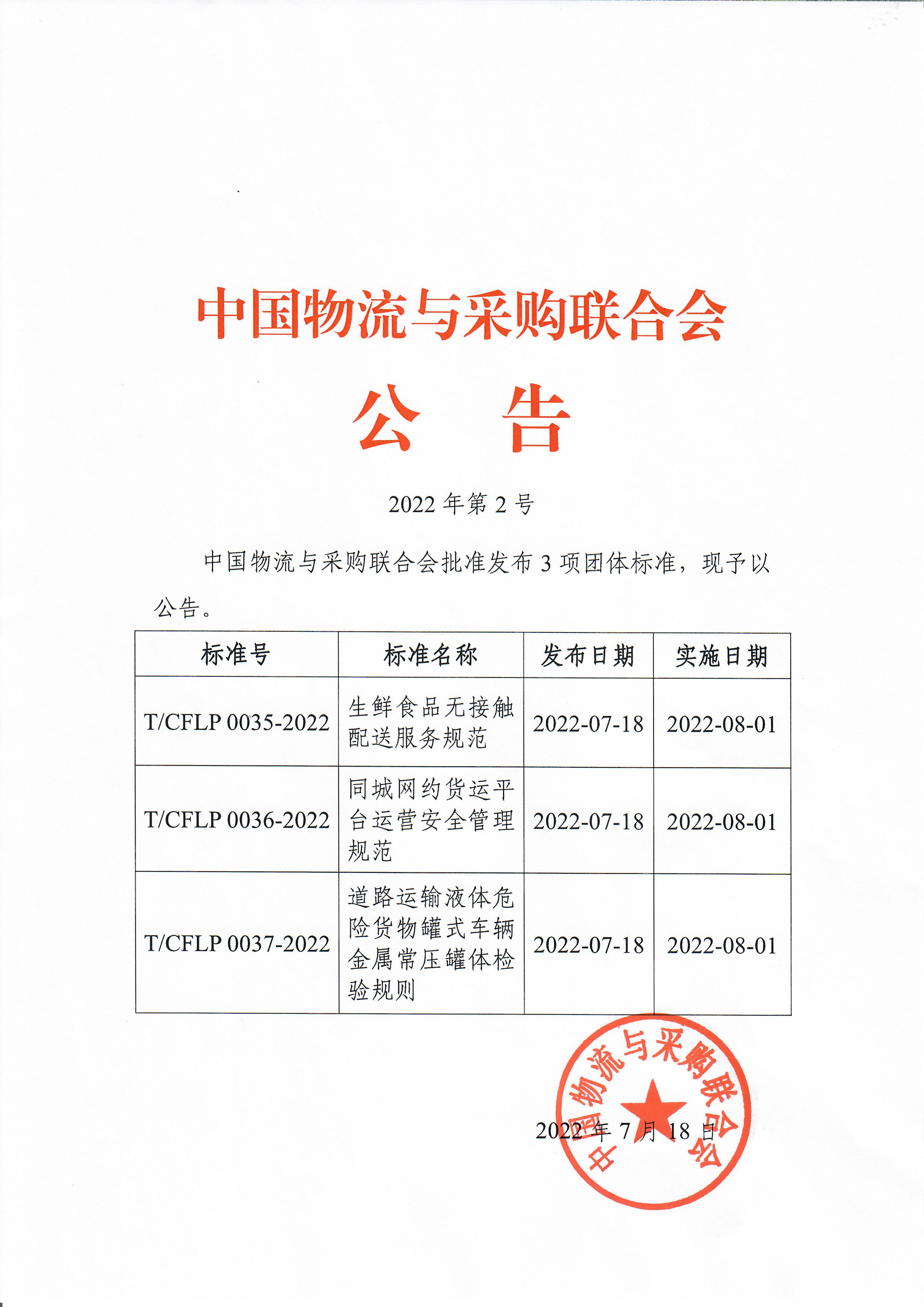 《生鲜食品无接触配送服务规范》等3项团体标准发布