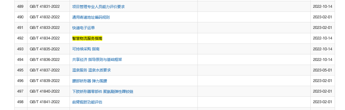 2022年10月14日,国家市场监督管理总局、国家标准化管理委员会发布公告(2022年第13号),其中批准发布了由全国物流标准化技术委员会提出并归口的《智慧物流服务指南》(GB/T 41834-2022)国家标准。