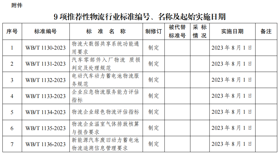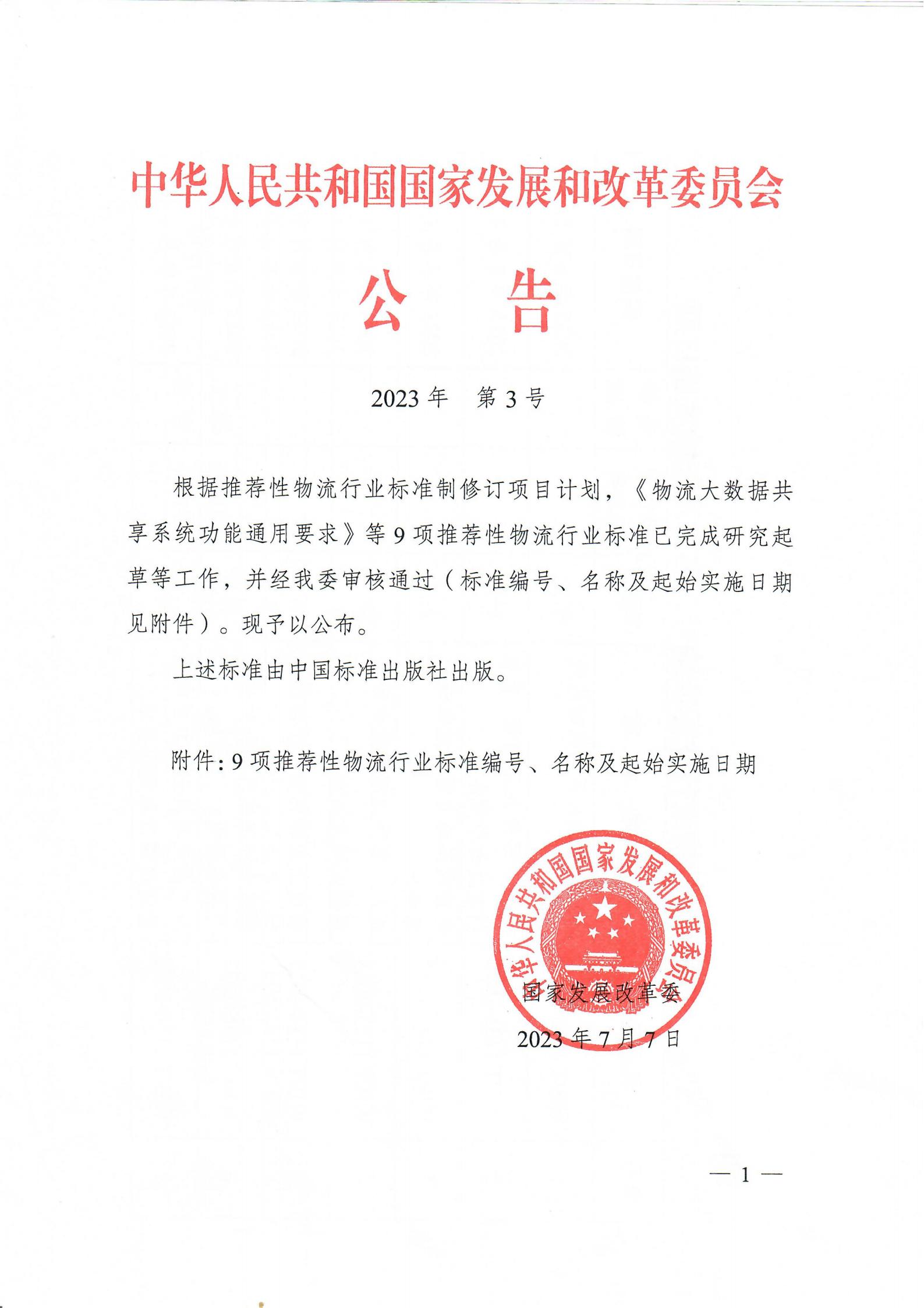 2023年7月7日,国家发展改革委发布2023年第3号公告,公布了9项物流行业标准编号、名称及起始实施日期。这9项物流行业标准,由taptap免费版苹果提出,全国物流标准化技术委员会归口。