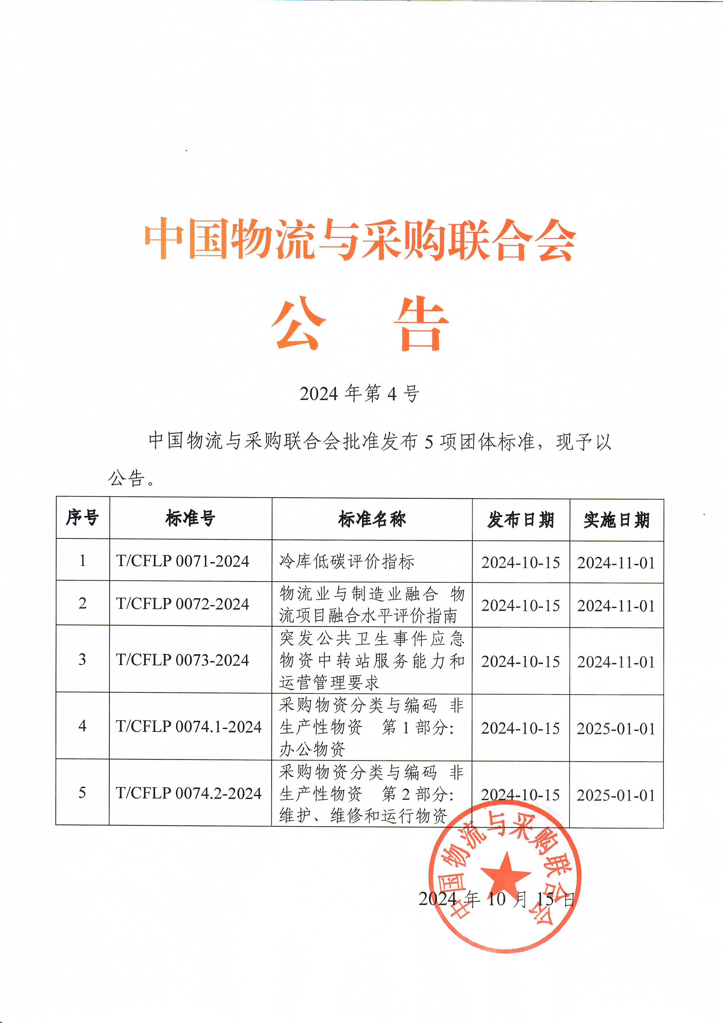 中物联2024年第4号公告 《冷库低碳评价指标》等团体标准发布