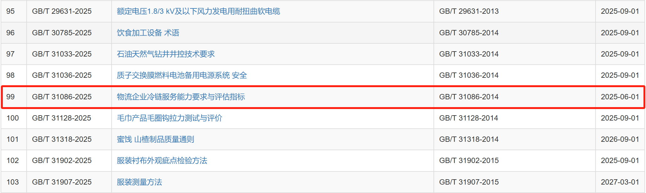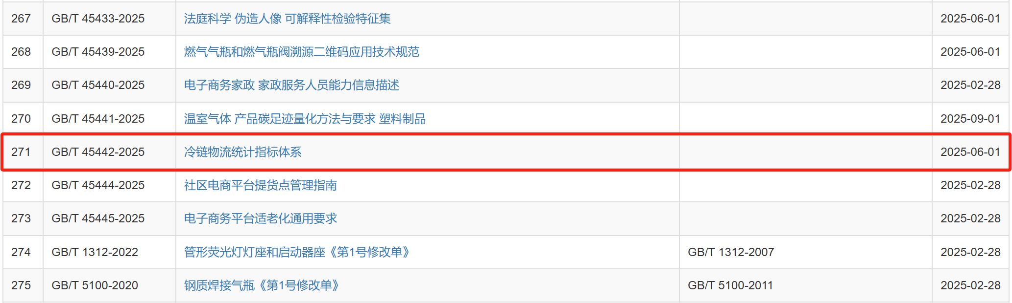 2025年2月28日,国家市场监督管理总局、国家标准化管理委员会批准发布282项国家标准,其中包括由全国物流标准化技术委员会提出并归口的《冷链物流统计指标体系》(GB/T 45442-2025)和《物流企业冷链服务能力要求与评估指标》(GB/T 31086-2025)两项国家标准。