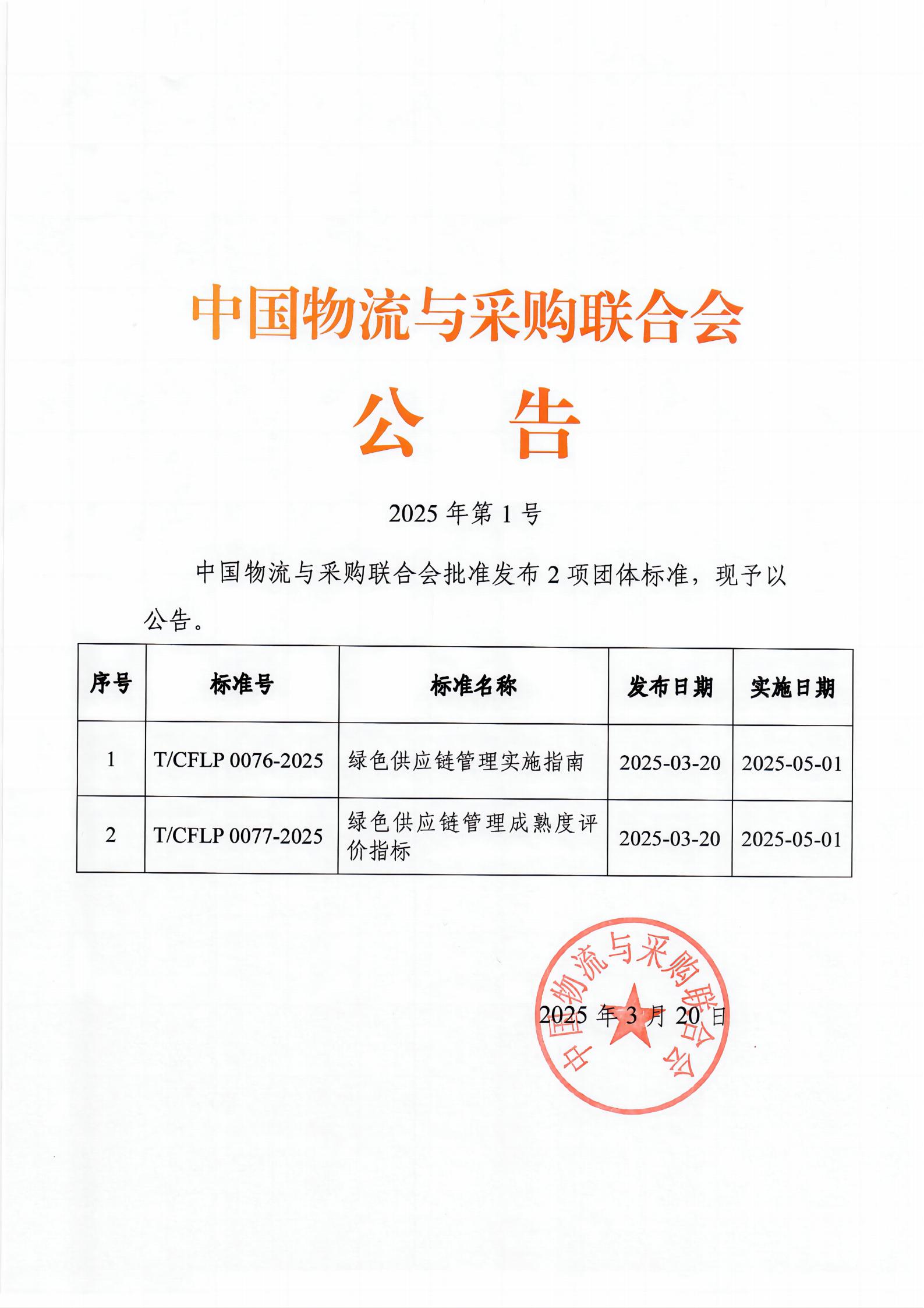中物联2025年第1号公告 《绿色供应链管理实施指南》等团体标准发布