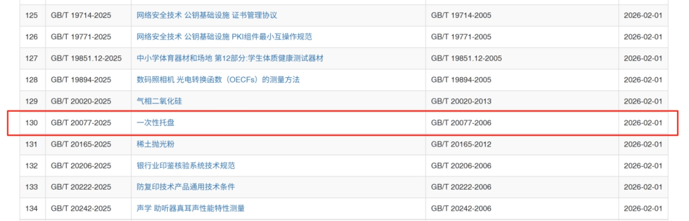 《一次性托盘》给出了一次性托盘的分类,规定了要求、检验规则、标志、包装、运输和贮存,描述了对应的试验方法,适用于一次性托盘的设计、生产、检测、使用和管理。该标准代替GB/T 20077-2006,将于2026年2月1日起实施。