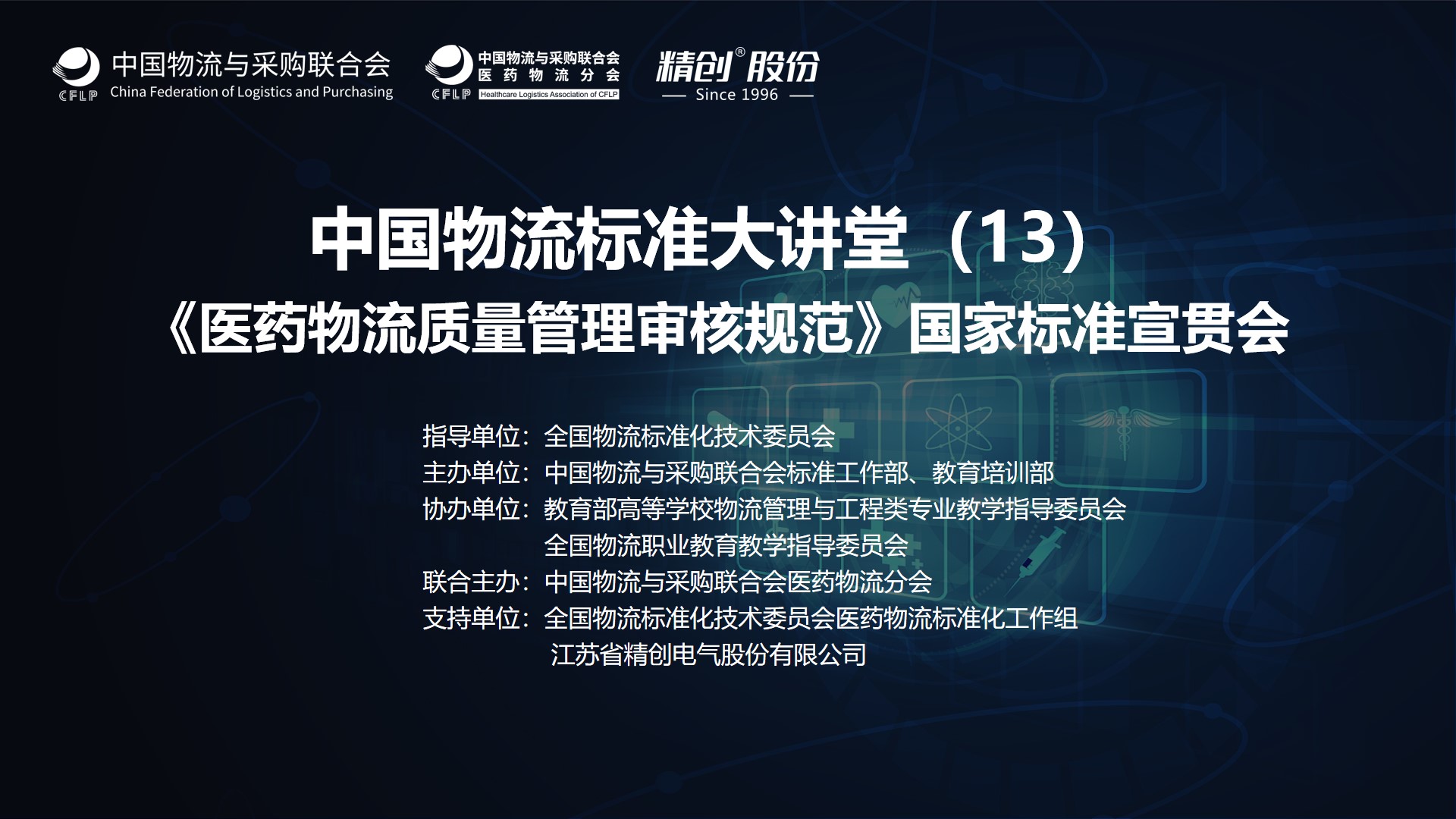 “中国物流标准大讲堂”由全国物流标准化技术委员会指导,taptap免费版苹果标准工作部、教育培训部主办,教育部高等学校物流管理与工程类专业教学指导委员会、全国物流职业教育教学指导委员会协办,是一项常态化的公益性物流标准宣贯活动。本次活动得到taptap免费版苹果医药物流分会联合主办,全国物流标准化技术委员会医药物流标准化工作组、江苏省精创电气股份有限公司的大力支持。