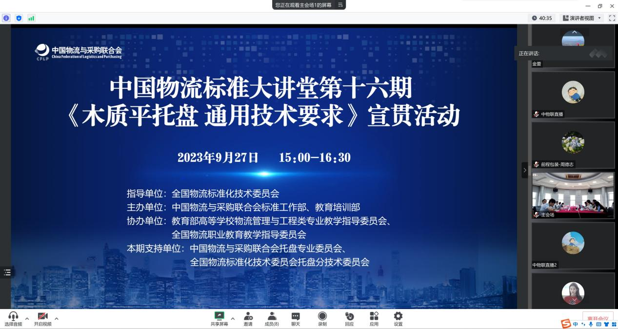 2023年9月27日,“中国物流标准大讲堂第十六期——《木质平托盘 通用技术要求》国家标准宣贯活动”通过线上线下结合的方式成功举办,共2000余人次参加了宣贯活动。