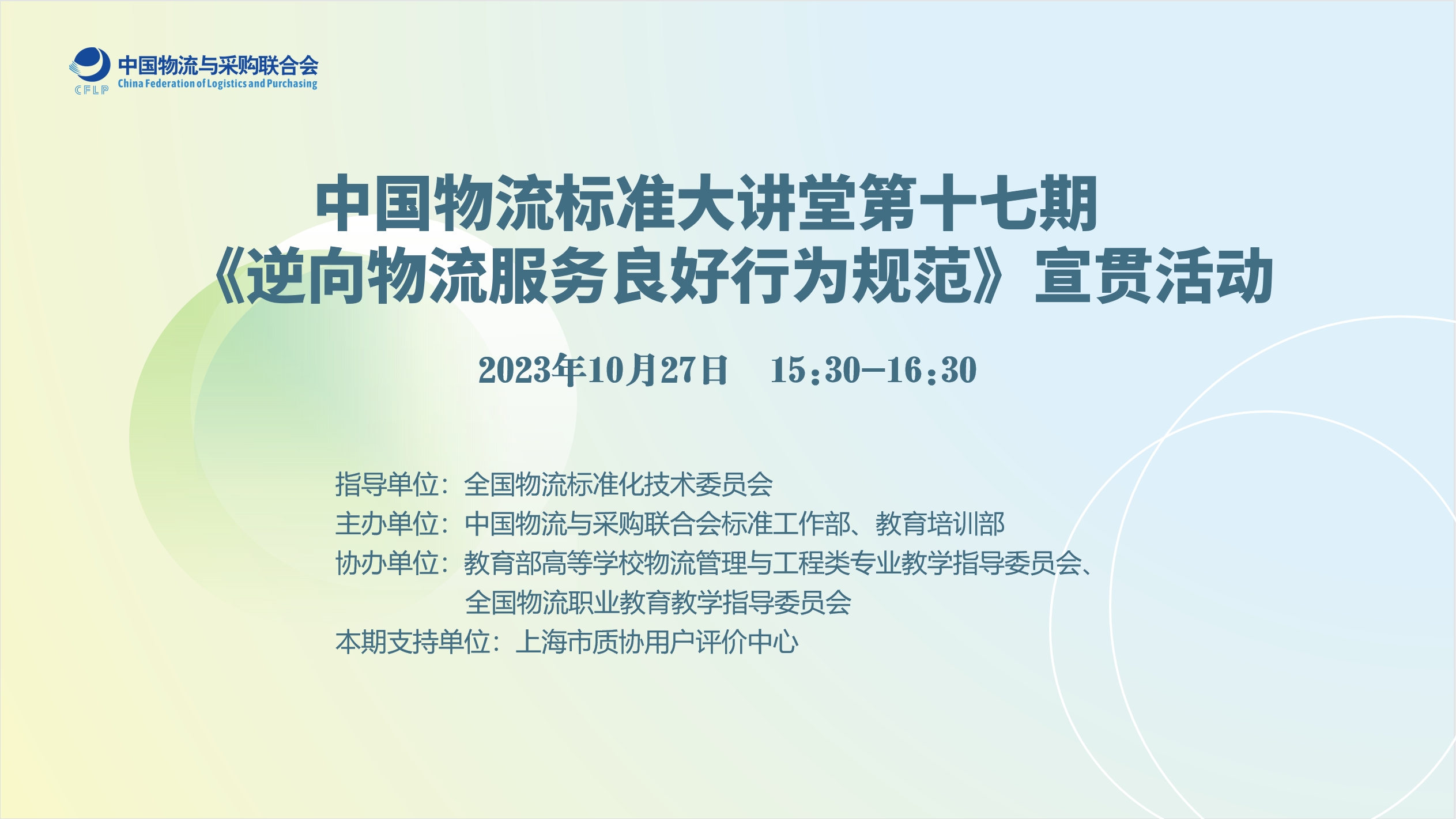 为促进广大标准使用者对该标准的理解和应用,全国物流标准化技术委员会定于2023年10月27日在“中国物流标准大讲堂”开展该标准的宣贯活动。具体事宜如下:
