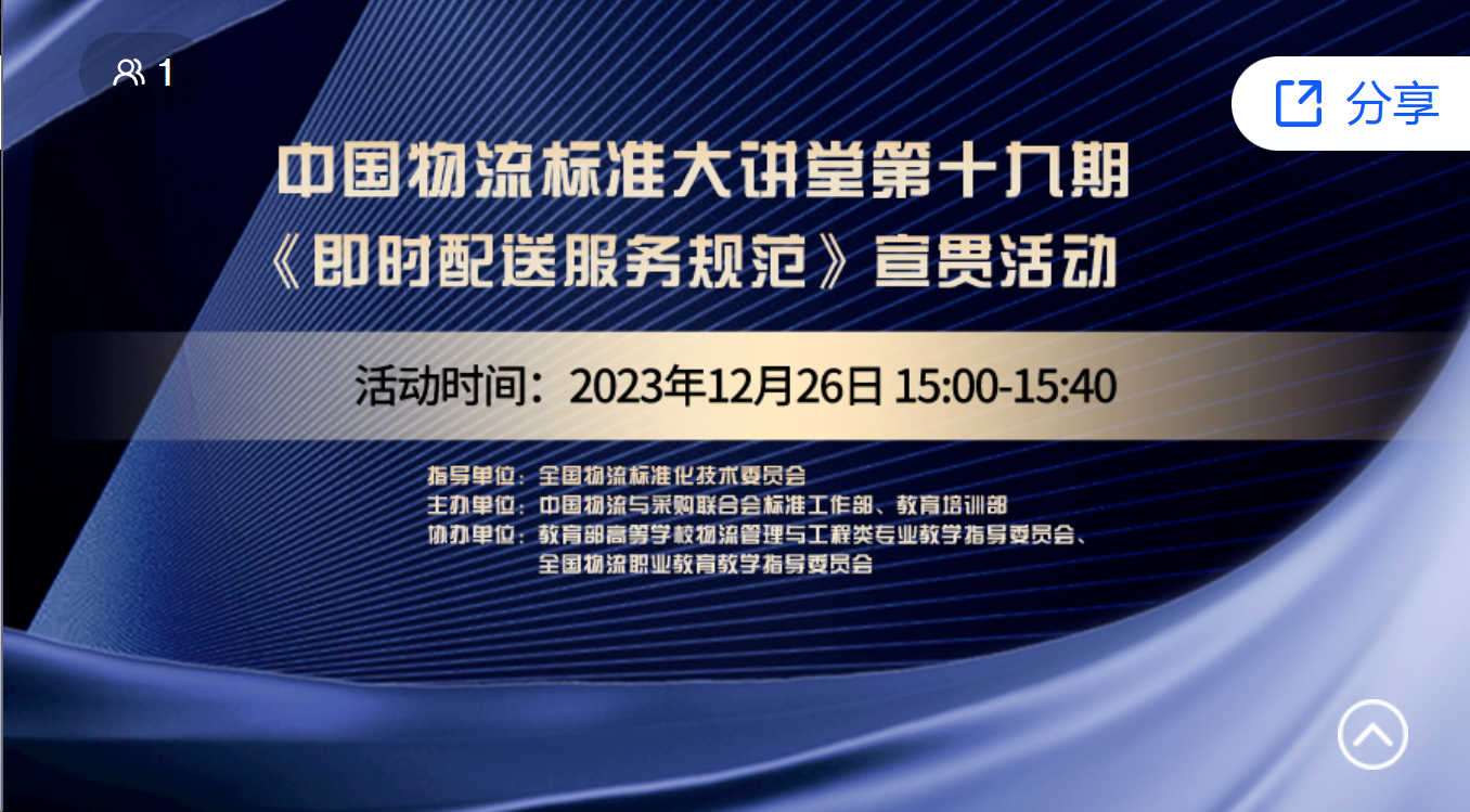 为促进广大标准使用者对该标准的理解和应用,全国物流标准化技术委员会定于2023年12月26日在“中国物流标准大讲堂”开展该标准的宣贯活动。具体事宜如下: