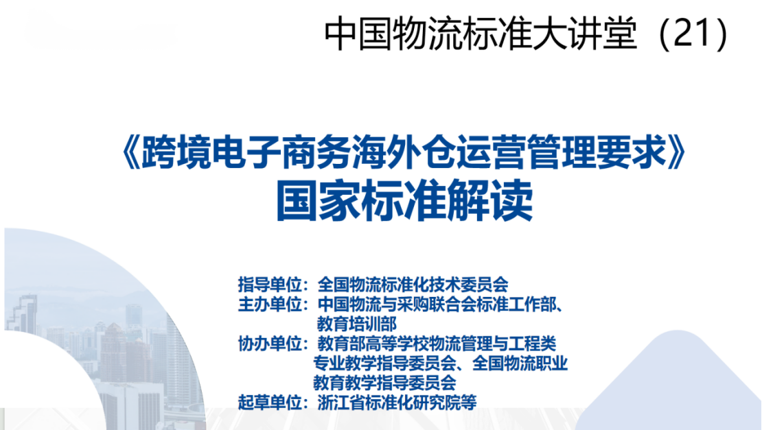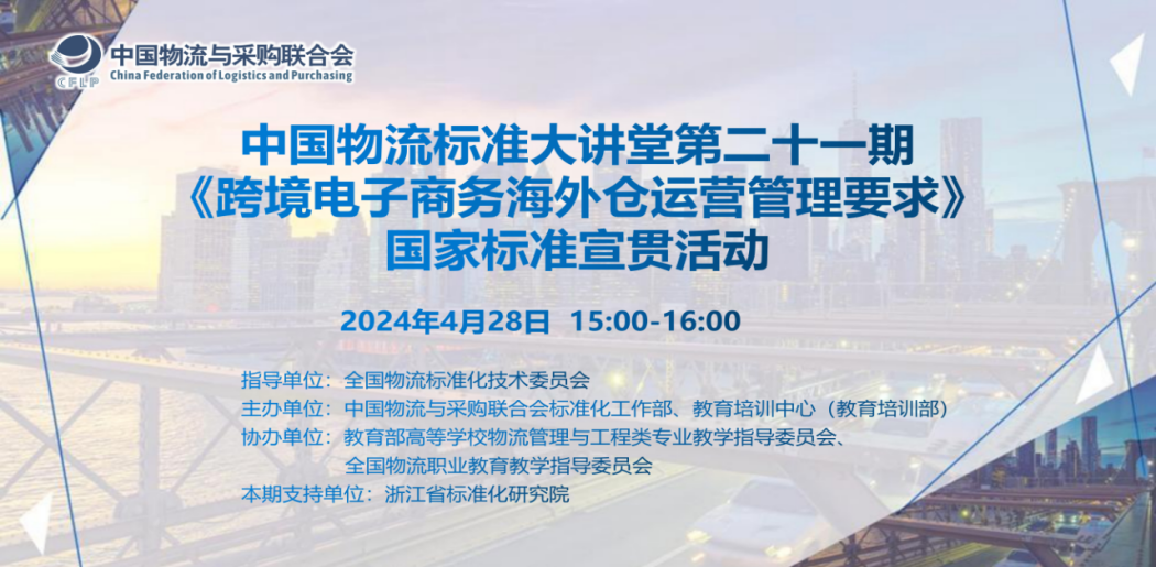 2024年4月28日,“中国物流标准大讲堂21期:《跨境电子商务海外仓运营管理要求》标准宣贯”通过线上方式成功举办,近 1000人参加了宣贯活动。