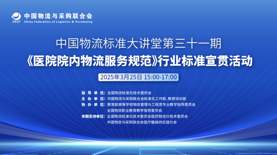 2025年3月25日,在全国物流标准化技术委员会的指导下,taptap免费版苹果标准化工作部和教育培训部以线下与线上结合的形式共同主办了“中国物流标准大讲堂”第31期活动——《医院院内物流服务规范》行业标准宣贯。线下会场设在长沙市,100余人参加;线上通过“中物联教育培训”微信视频号和小鹅通直播间、“中物联医疗器械”微信视频号三个平台同步直播,3500余人参加。