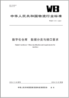 《数字化仓库 数据分类与接口要求》于2024年11月4日发布,2024年12月1日实施。该标准规定了数字化仓库的数据分类、数据接口要求,适用于数字化仓库数据分类管理和数据接口管理。