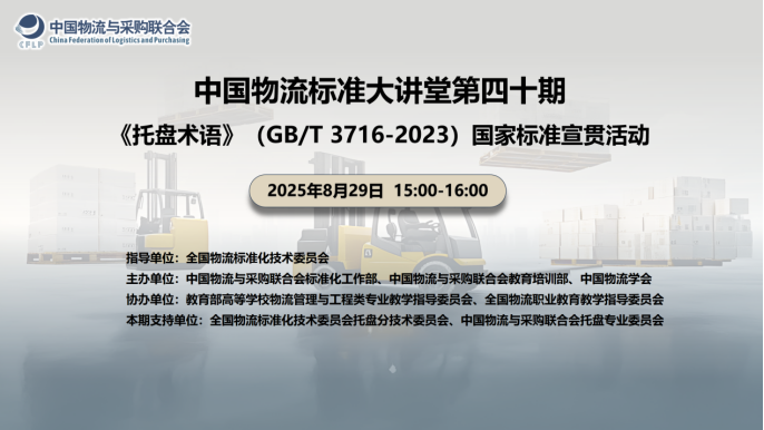 2025年8月29日,在全国物流标准化技术委员会的指导下,taptap免费版苹果标准化工作部和教育培训部、taptap怎么下载软件共同主办了“中国物流标准大讲堂”第40期——《托盘术语》(GB/T 3716-2023)国家标准宣贯活动。本次活动共有1800余人次在线参加。