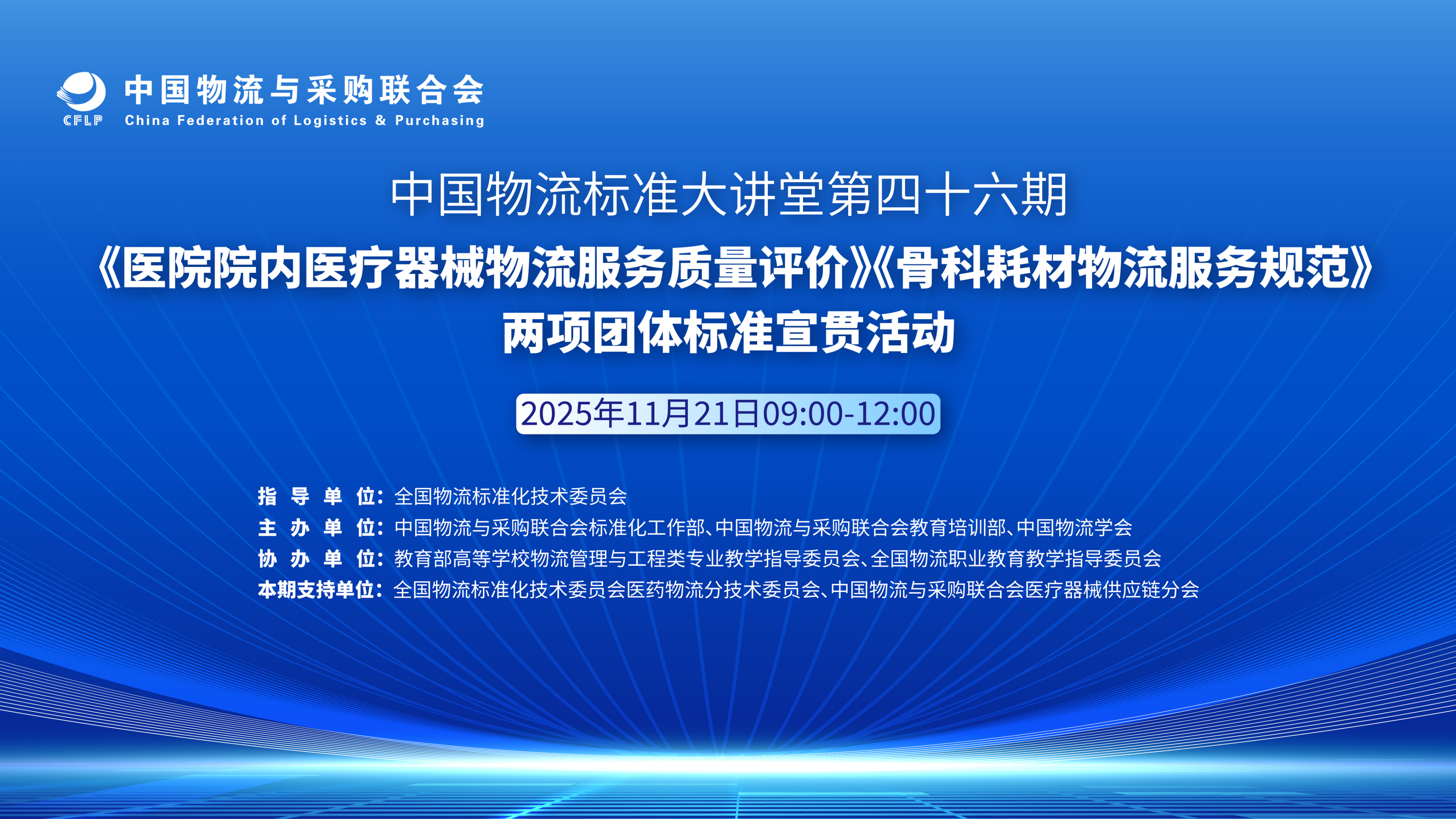 2025年11月21日,在全国物流标准化技术委员会的指导下,taptap免费版苹果标准化工作部、taptap免费版苹果教育培训部和taptap怎么下载软件共同主办了“中国物流标准大讲堂”第46期活动,对《医院院内医疗器械物流服务质量评价》(T/CFLP 0078-2025)、《骨科耗材物流服务规范》(T/CFLP 0079-2025)两项团体标准进行宣贯。活动通过线下与线上结合的形式举行,线下会场设在上海市,80余人参加;线上在“中物联教育培训”“taptap怎么下载软件”和“中物联医疗器械”微信视频号以及“中物联教育培训”小鹅通直播间同步直播,3000余人次参加。