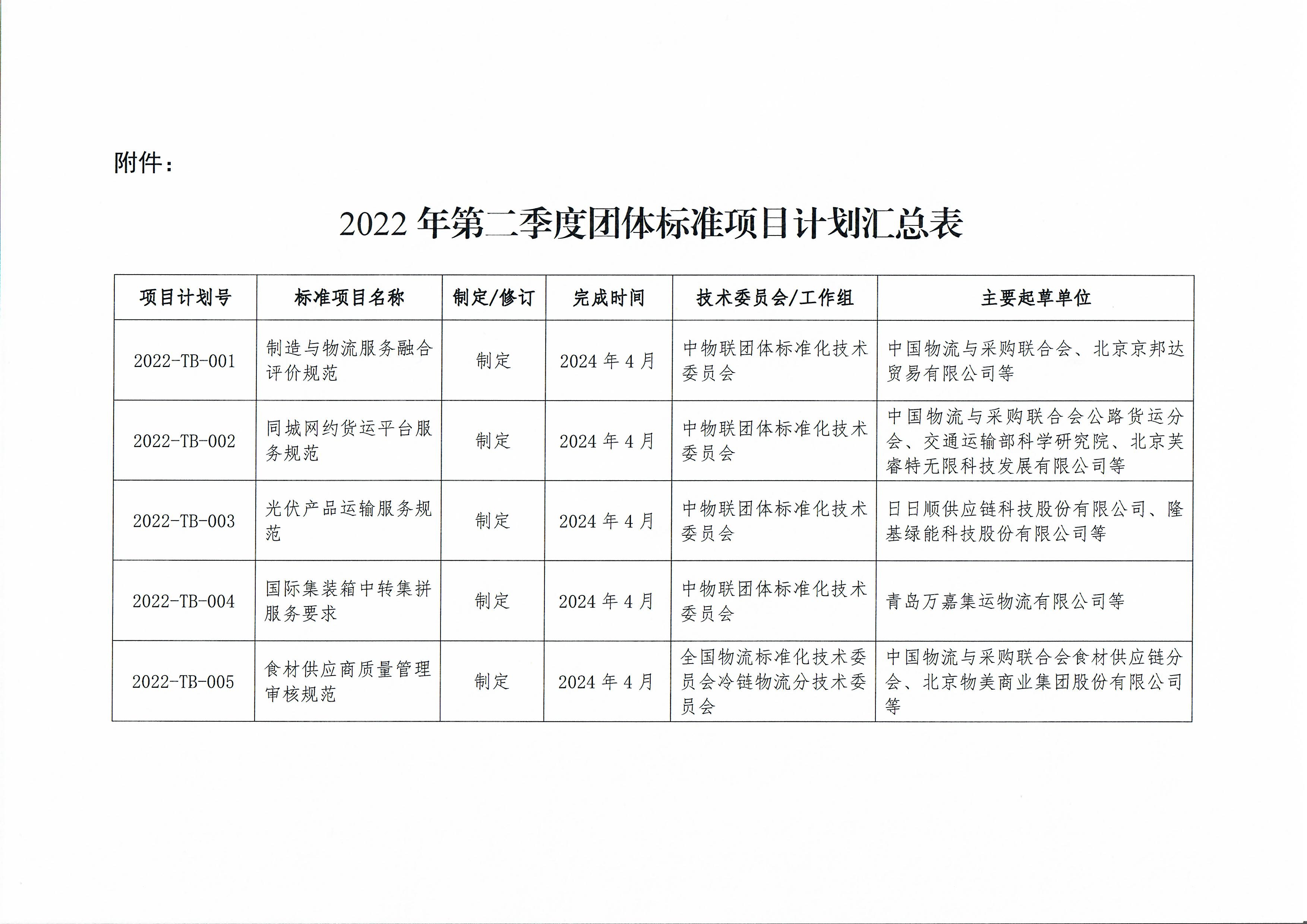 中物联印发2022年第二季度团标项目计划的通知