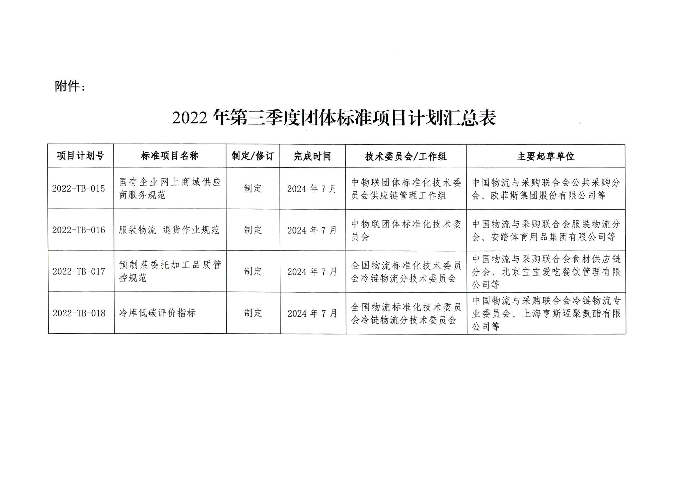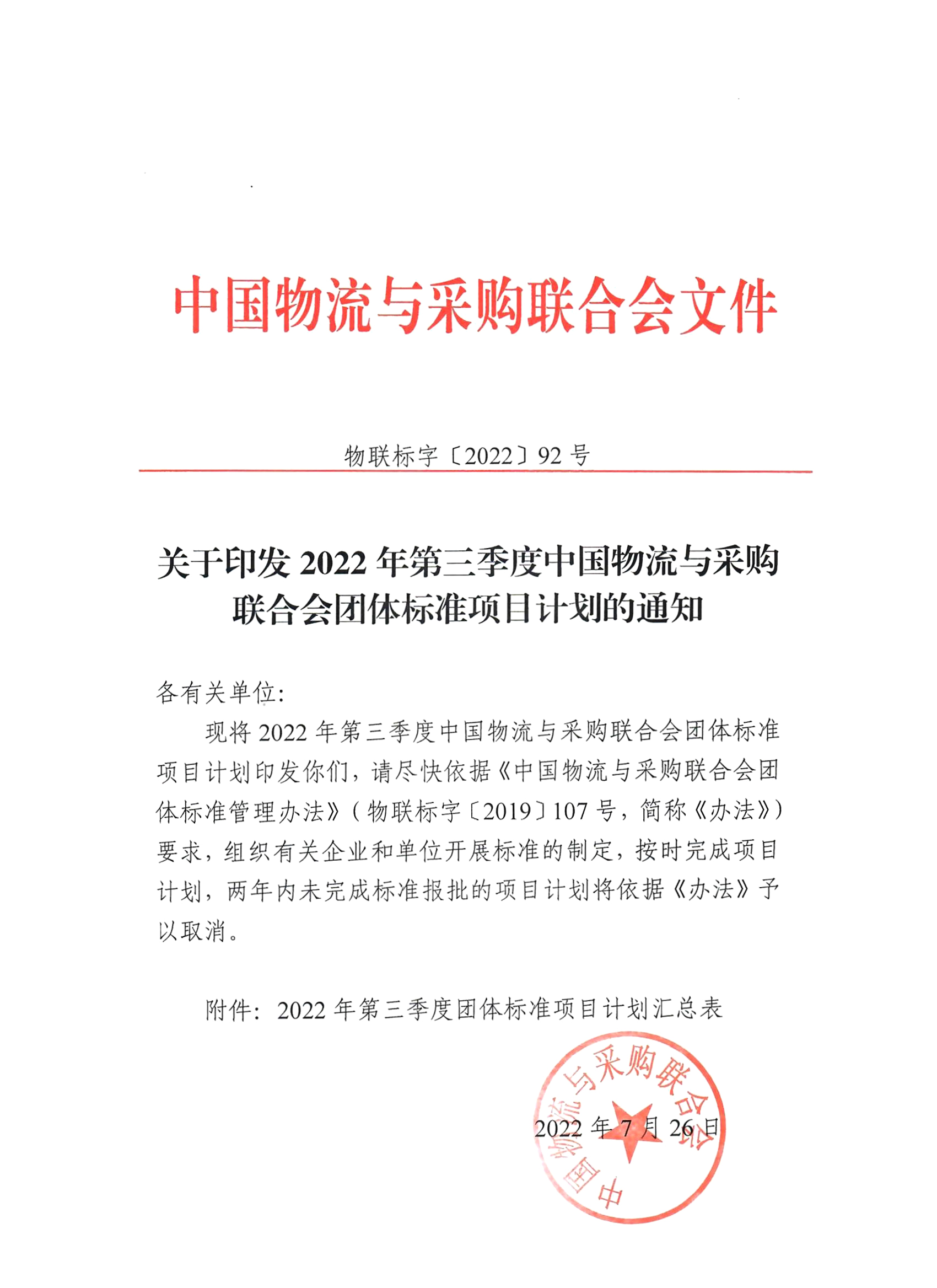 中物联印发2022年第三季度中物联团标项目计划的通知