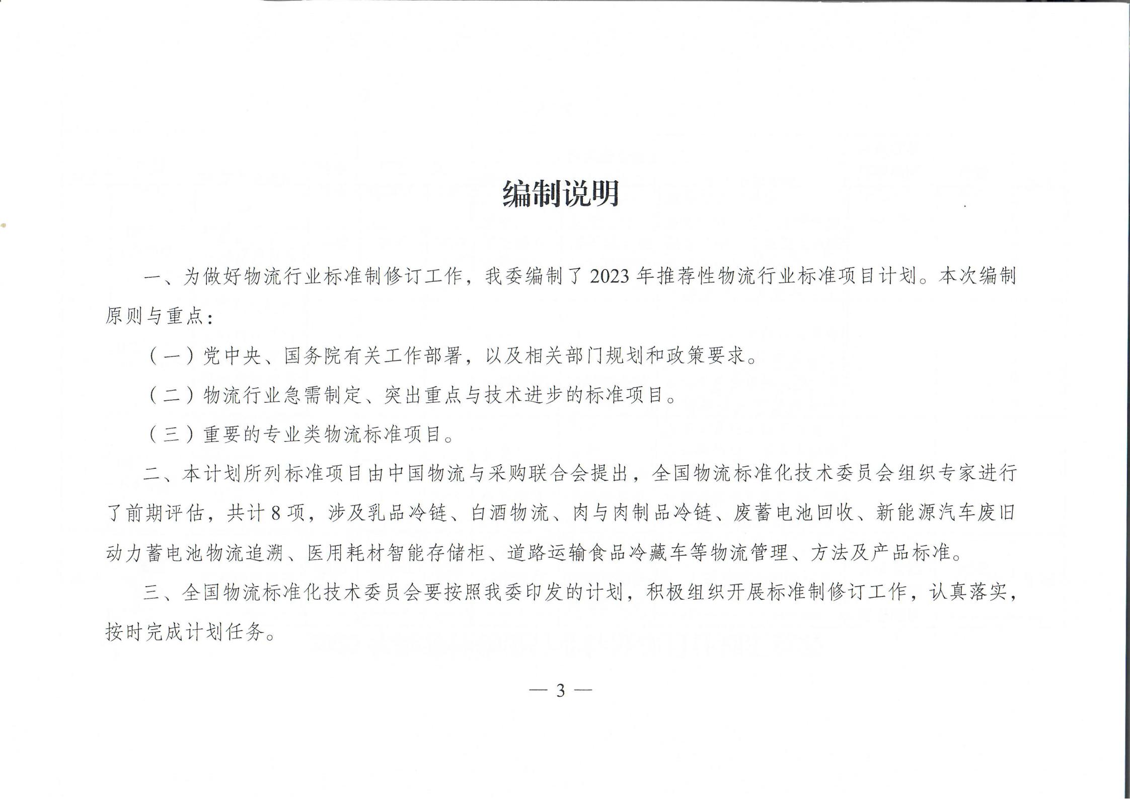 国家发改委印发2023年推荐性物流行业标准项目计划