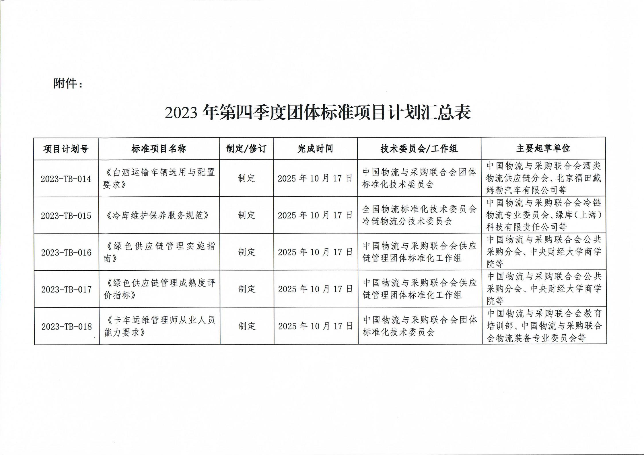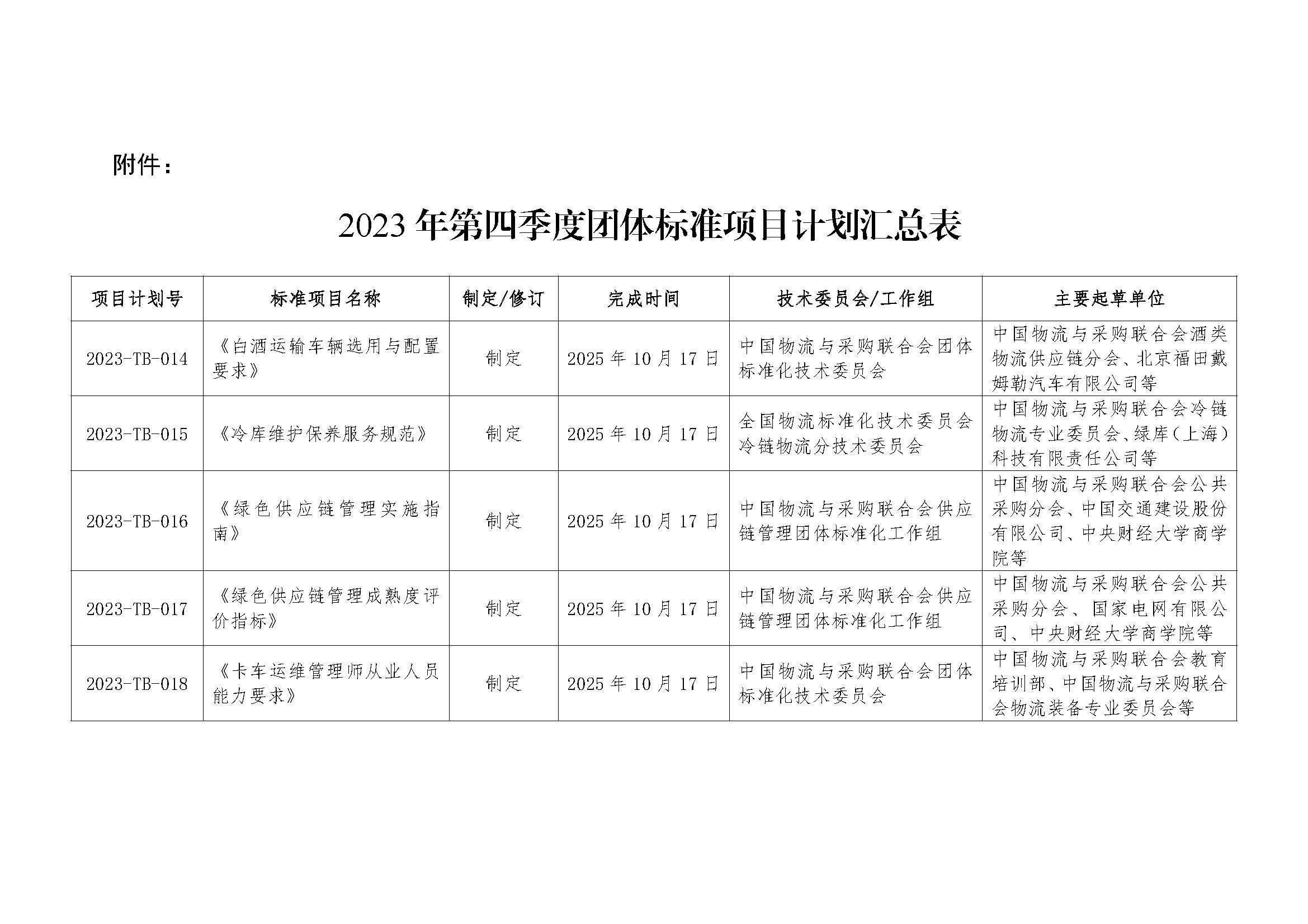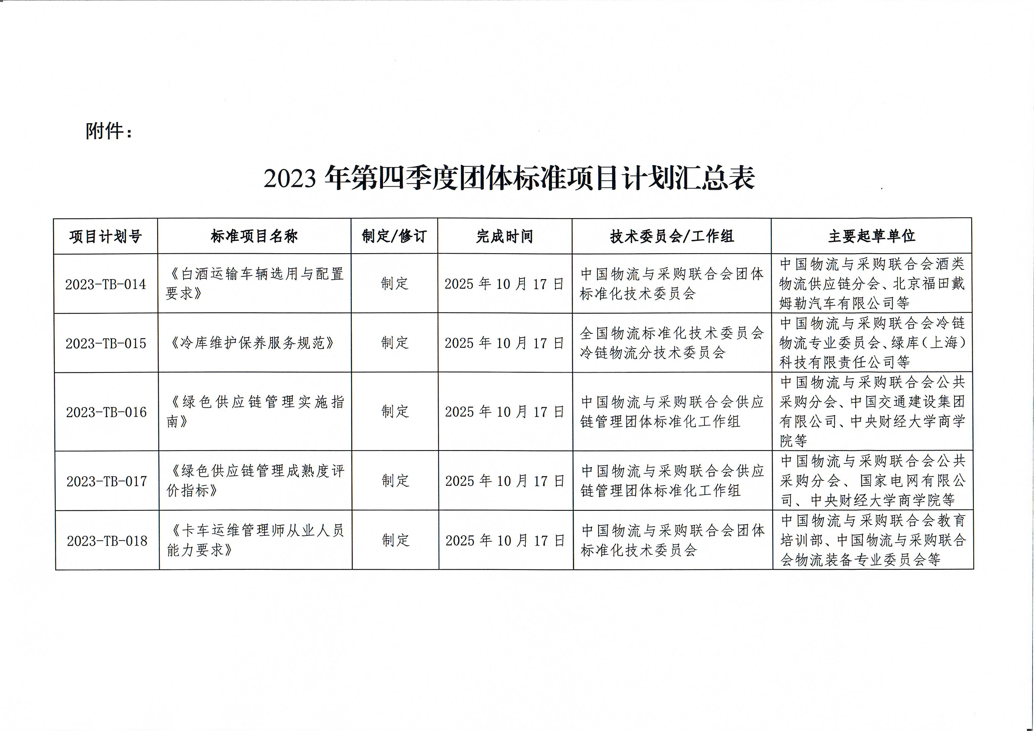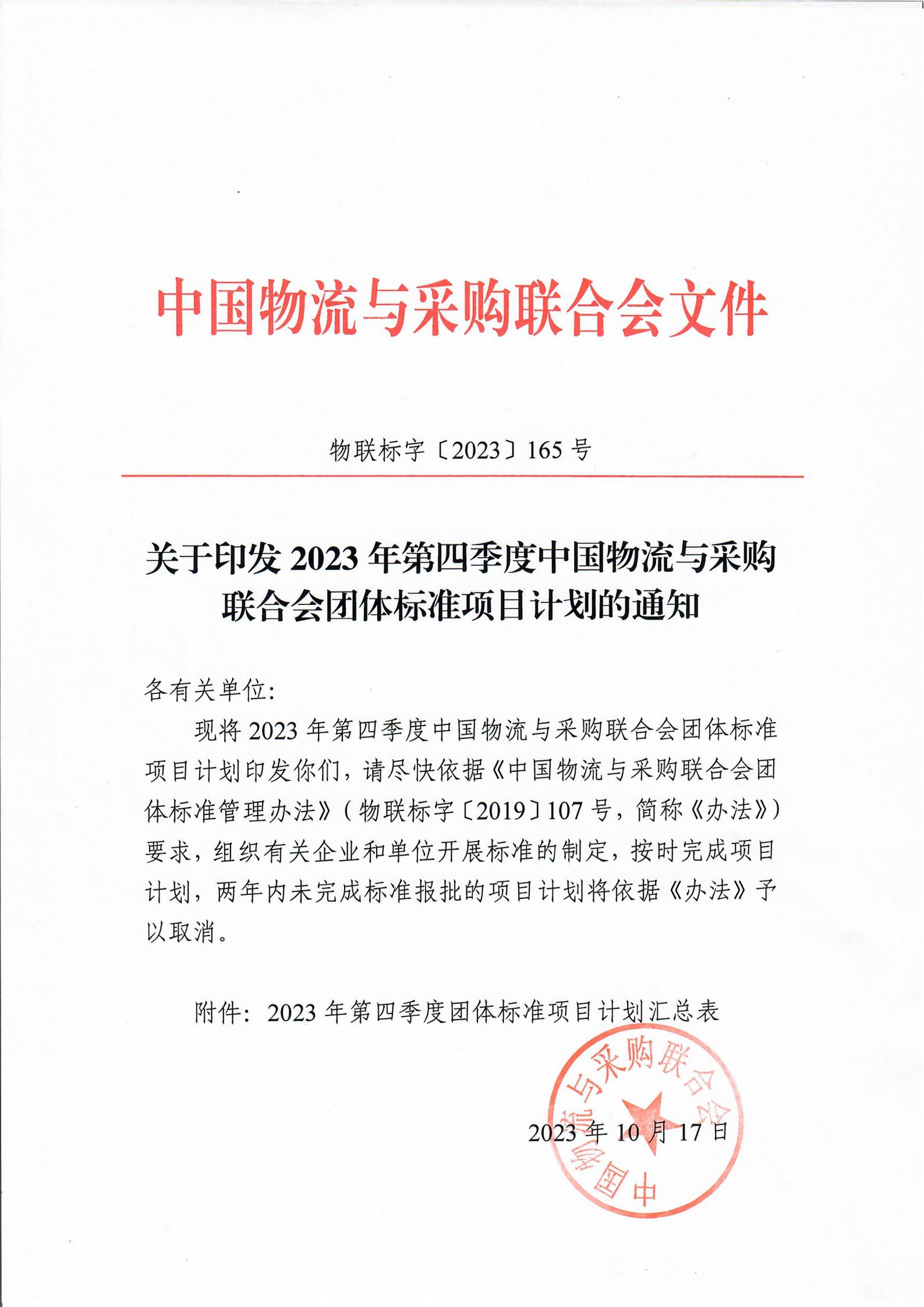 中物联印发2023年第四季度团体标准项目计划