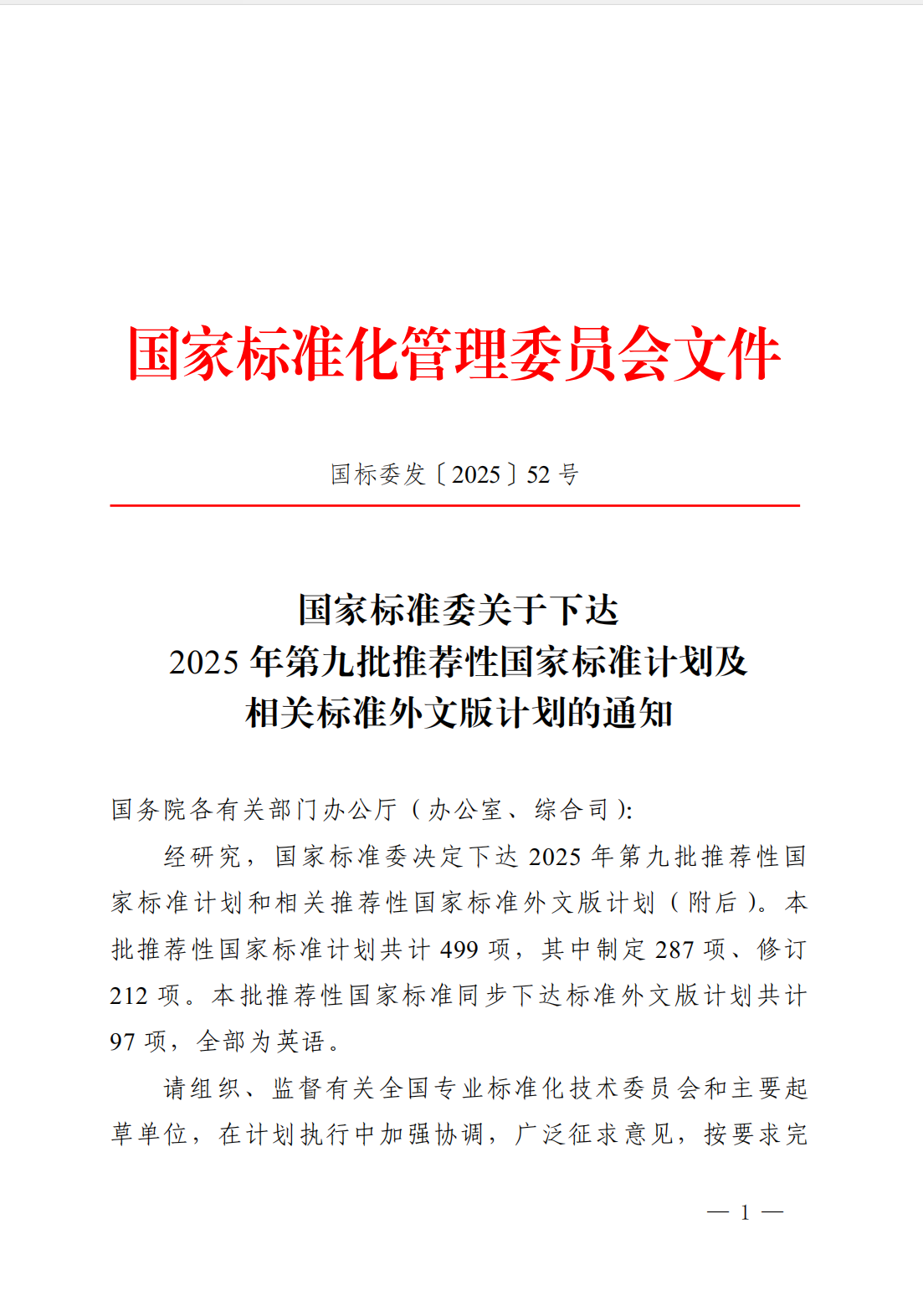 近日,国家标准化管理委员会发布《2025年第九批推荐性国家标准计划及相关标准外文版计划的通知》(国标委发〔2025〕52号),其中下达了1项物流国家标准项目计划以及1项外文版项目计划。