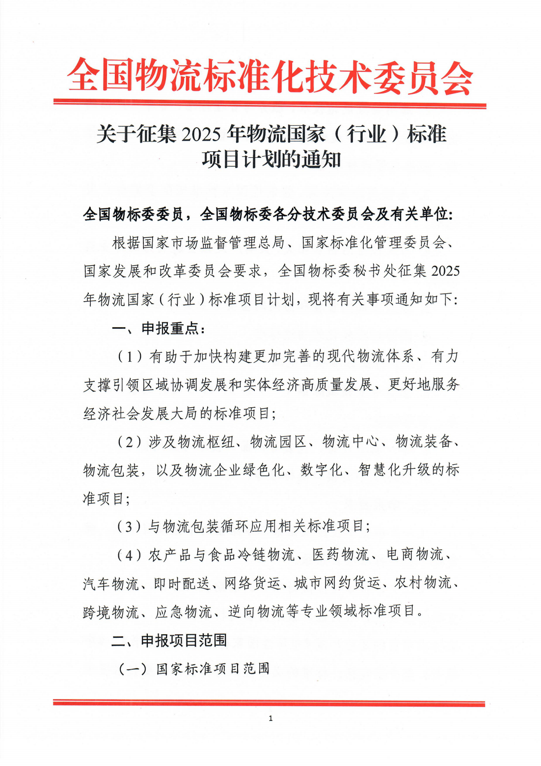 关于征集2025年物流国家(行业)标准项目计划的通知